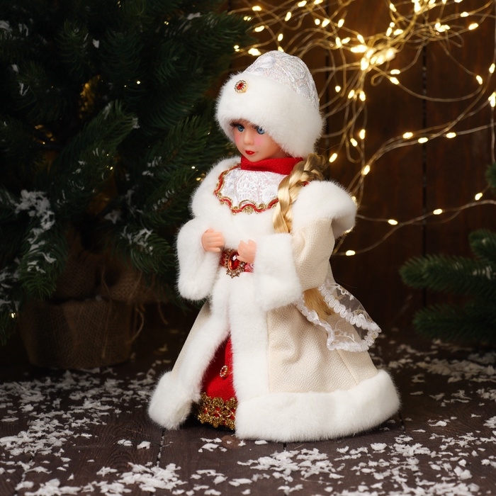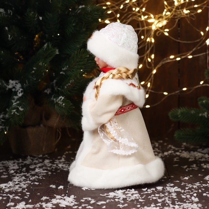 Снегурочка "В шубке, с ремешком и косой" двигается, 30х15 см, бежевый