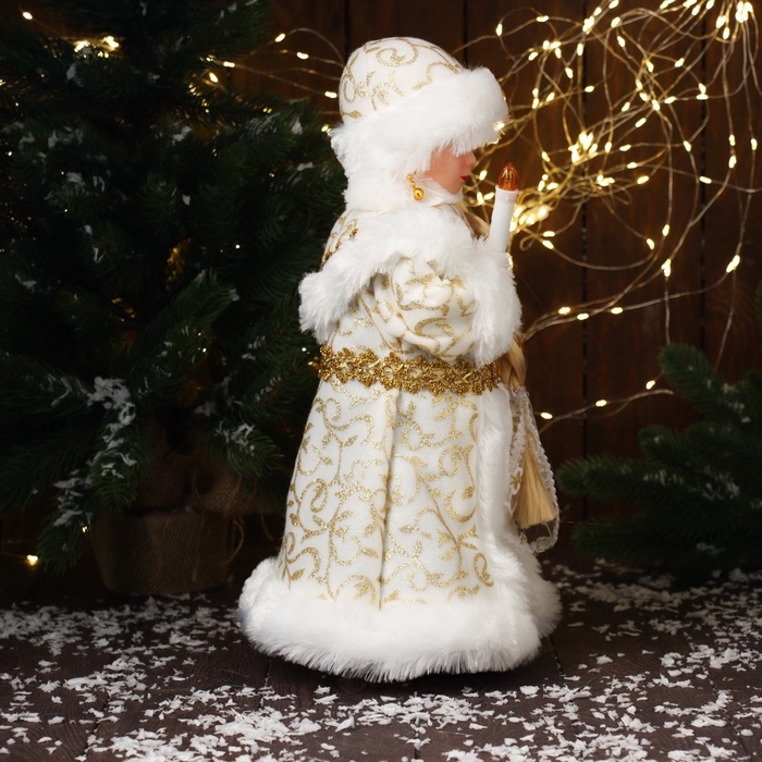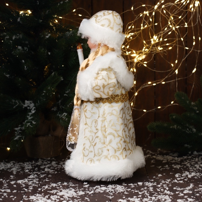 Снегурочка "В шубке с орнаментом" двигается, с подсветкой, 40х20 см, золото
