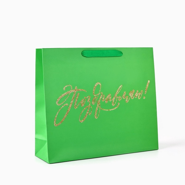 Пакет ламинированный вертикальный «Поздравляем», глиттер, M, 26 х 30 х 9 см