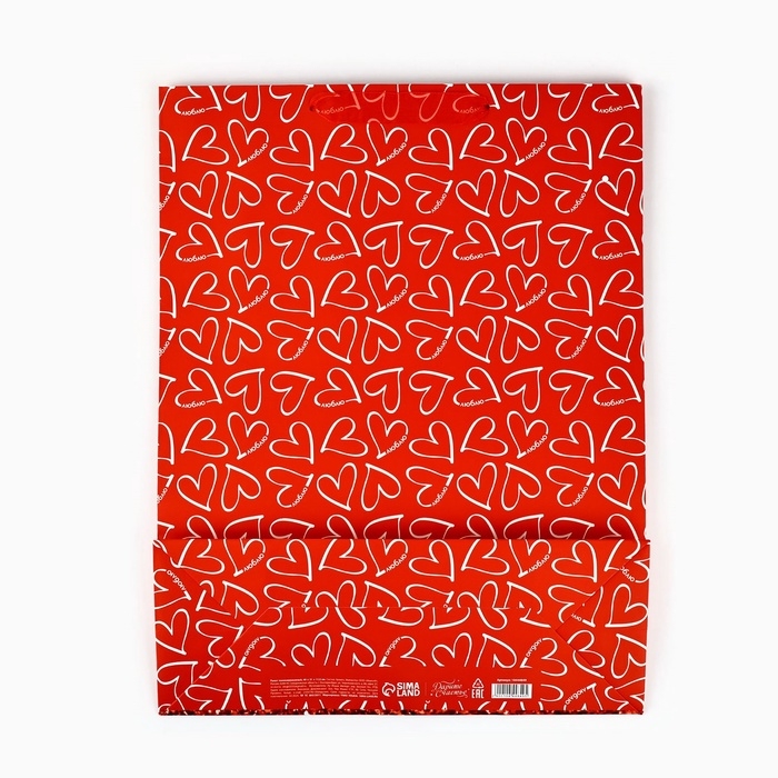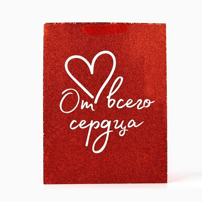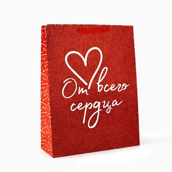 Пакет ламинированный вертикальный «От всего сердца», глиттер, L 31 х 40 х 11.5 см