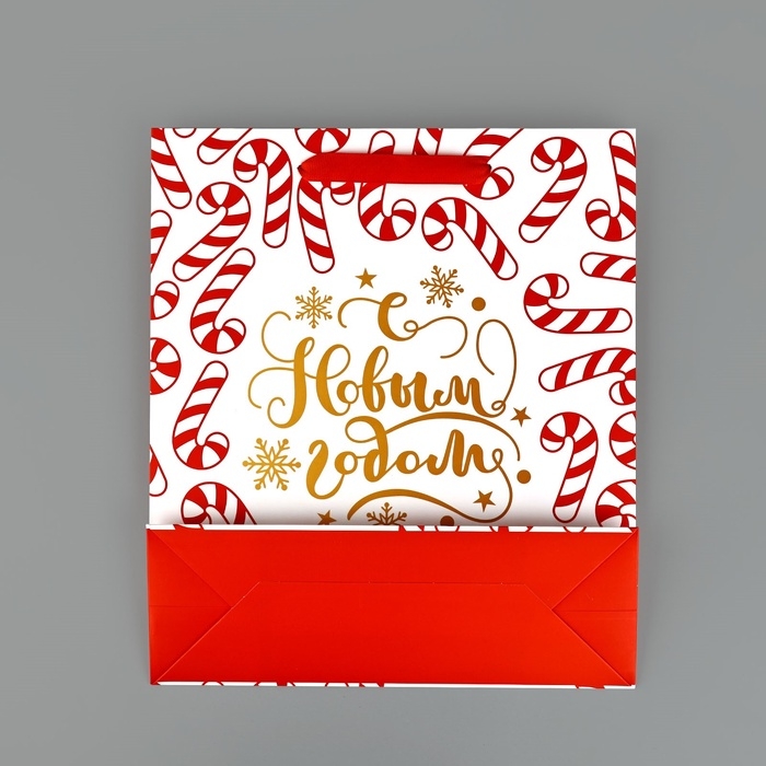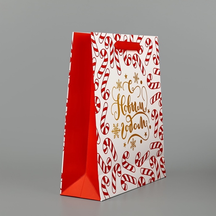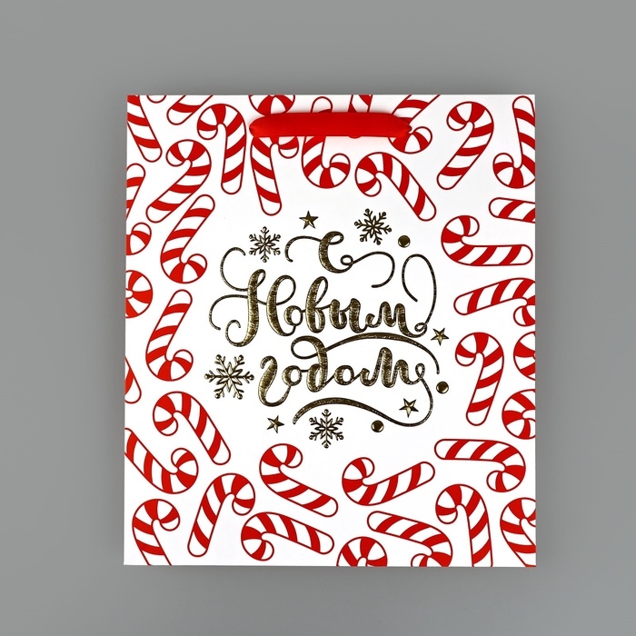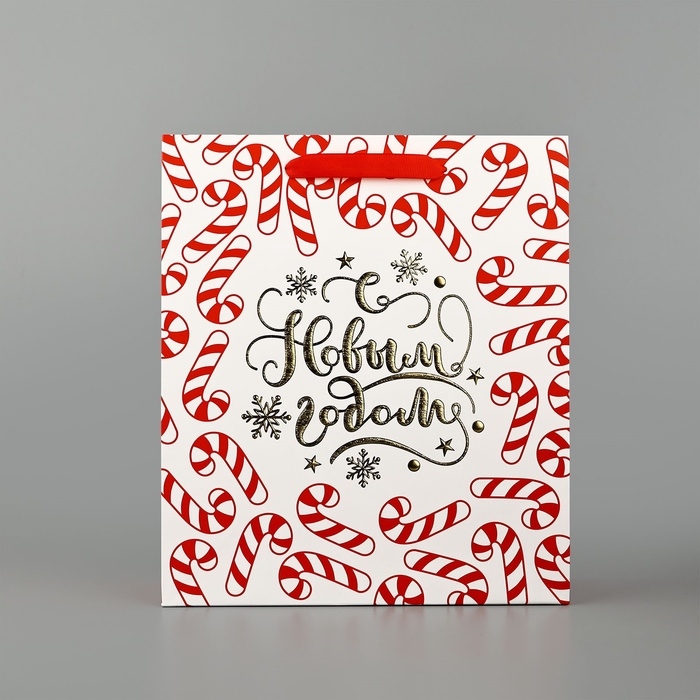 Пакет подарочный новогодний ламинированный «Новогодние леденцы», тиснение, M 30 х 26 х 9 см, Новый год