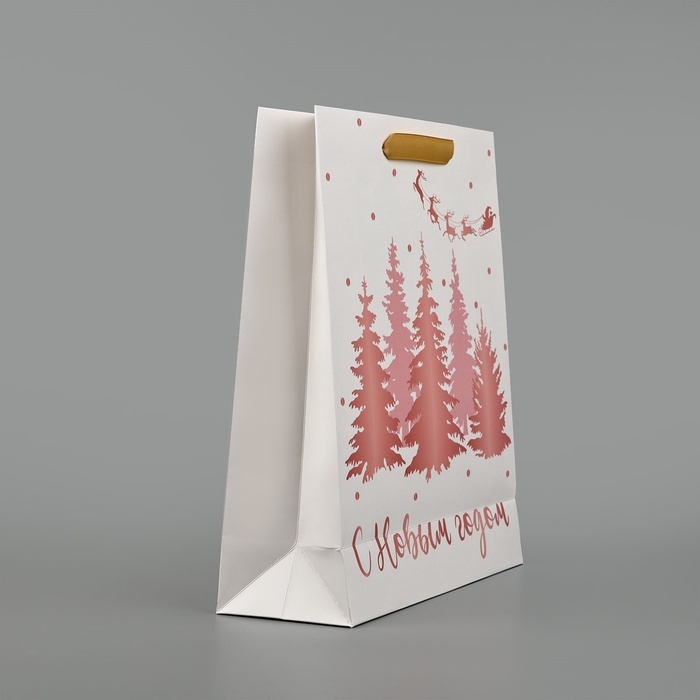 Пакет подарочный новогодний ламинированный «Сказочный лес», тиснение, M 30 х 26 х 9 см, Новый год