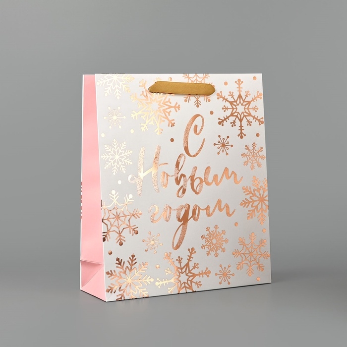 Пакет подарочный новогодний ламинированный «С новым счастьем», тиснение, M 30 х 26 х 9 см, Новый год