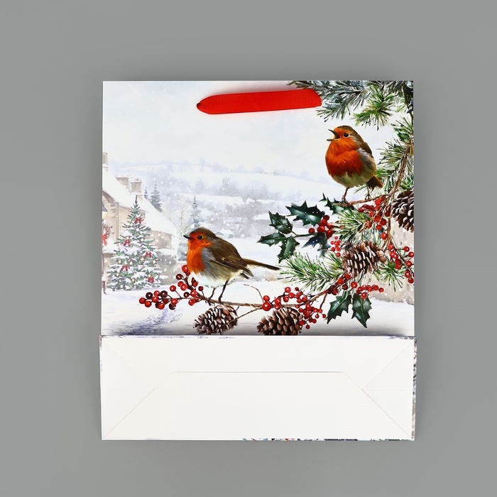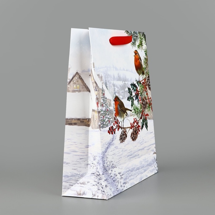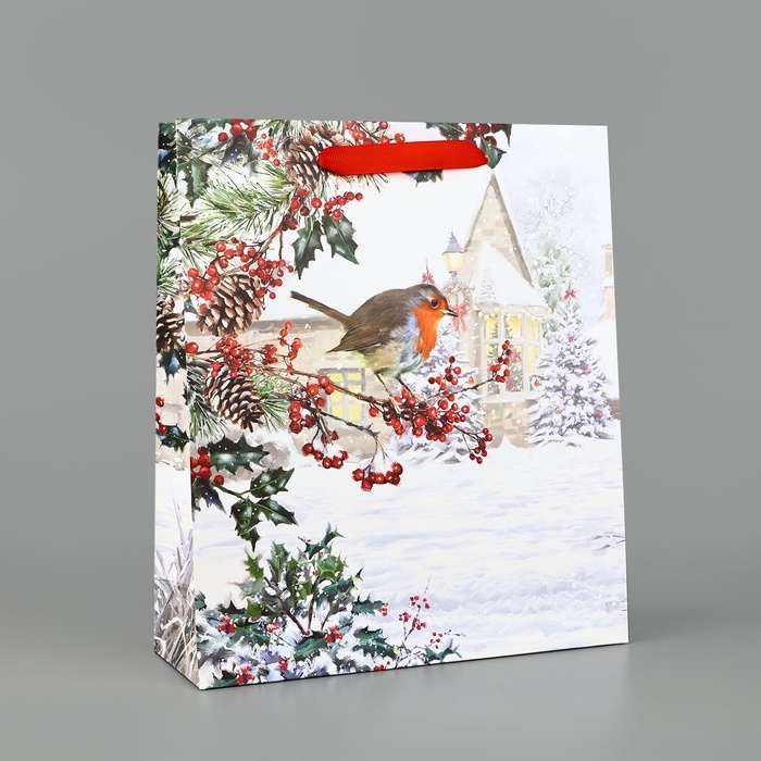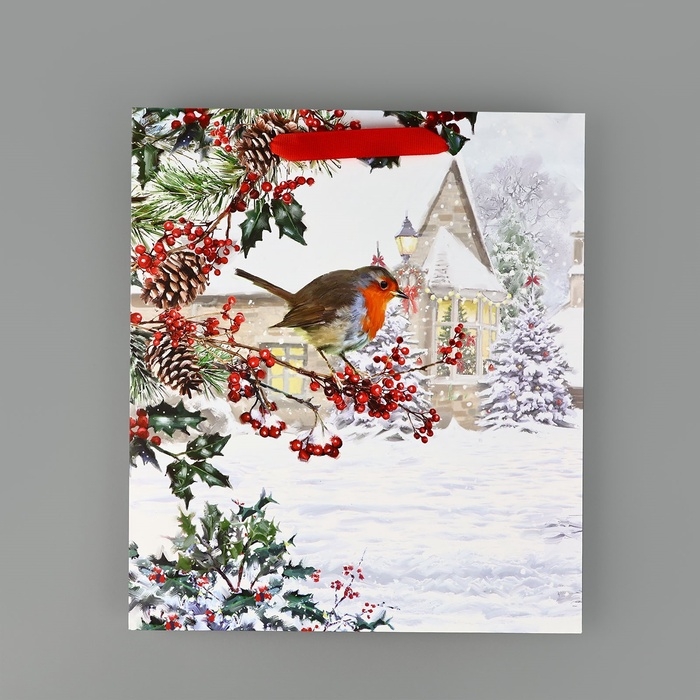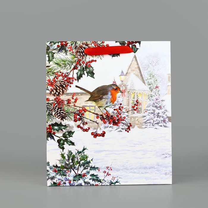 Пакет подарочный новогодний ламинированный «Зимнее утро», M 30 х 26 х 9 см, Новый год