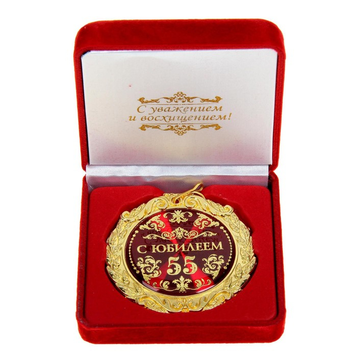 Медаль юбилейная в бархатной коробке «С юбилеем 55 лет», d= 7 см.