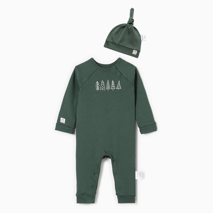 Новый год. Комбинезон с шапочкой Крошка Я "Еловые веточки", рост 80-86 см, зеленый