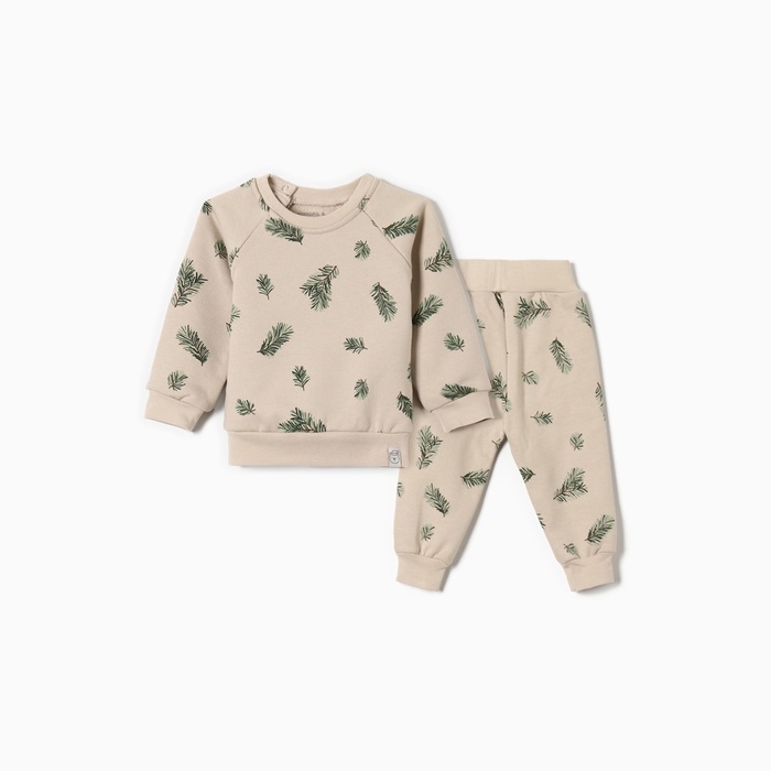 Новый год. Костюм (свитшот и брюки) Крошка Я "Еловые веточки", рост 62-68 см