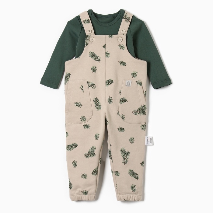 Новый год. Набор (боди и комбинезон) Крошка Я "Еловые веточки", рост 80-86 см