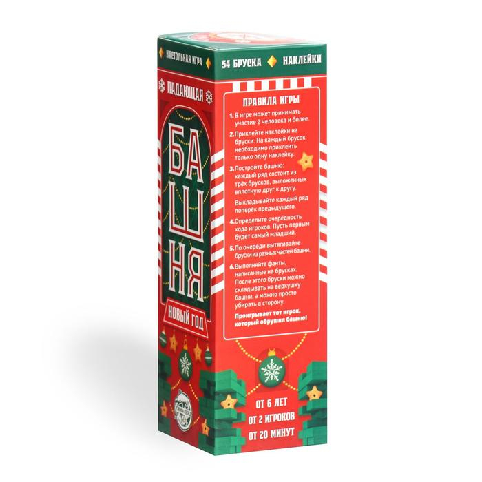 Новогодняя падающая башня «Новый год!», 54 бруска и наклейки, 6+