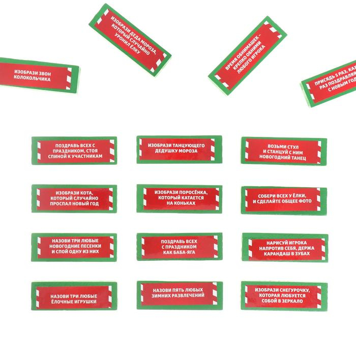 Собираясь всей семьёй 31 декабря, не забудьте взять новогоднюю падающую башню. По очереди вытягивайте бруски и пытайтесь не обрушить конструкцию. А ещё выполняйте забавные праздничные фанты!