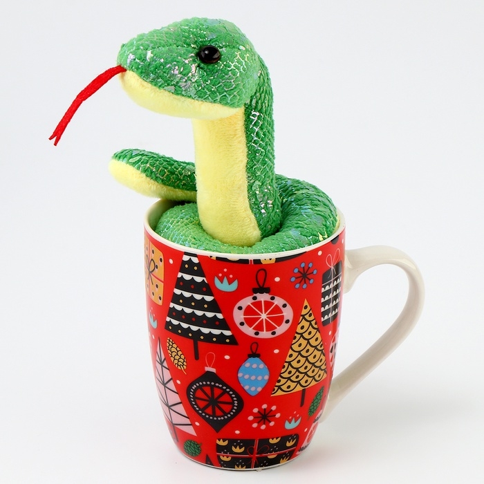 Новогодний подарочный набор «Исполнения желаний»: мягкая игрушка змея и кружка