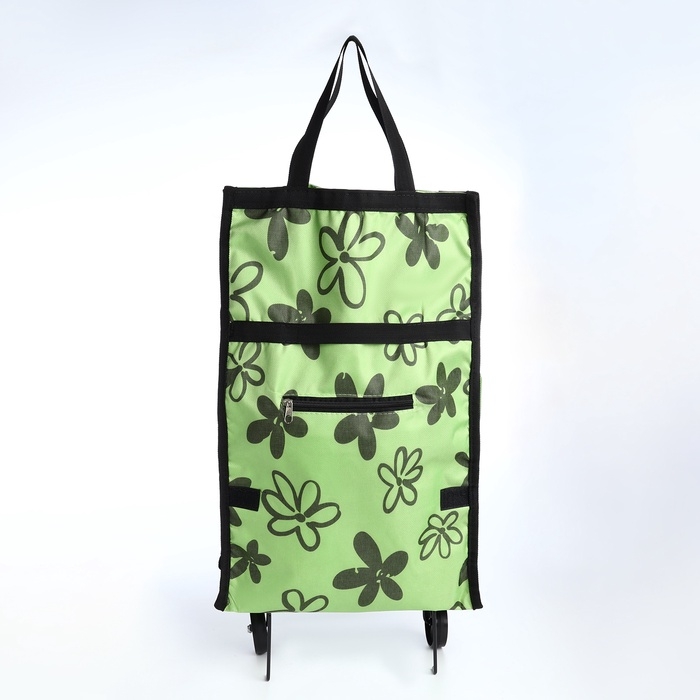 Сумка хозяйственная складная на липучке, 2 колеса, цвет зелёный