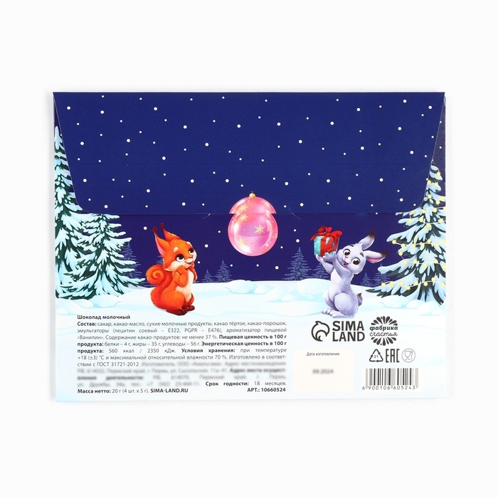Шоколад в конверте "Зверята в лесу" 5 гр 4 шт