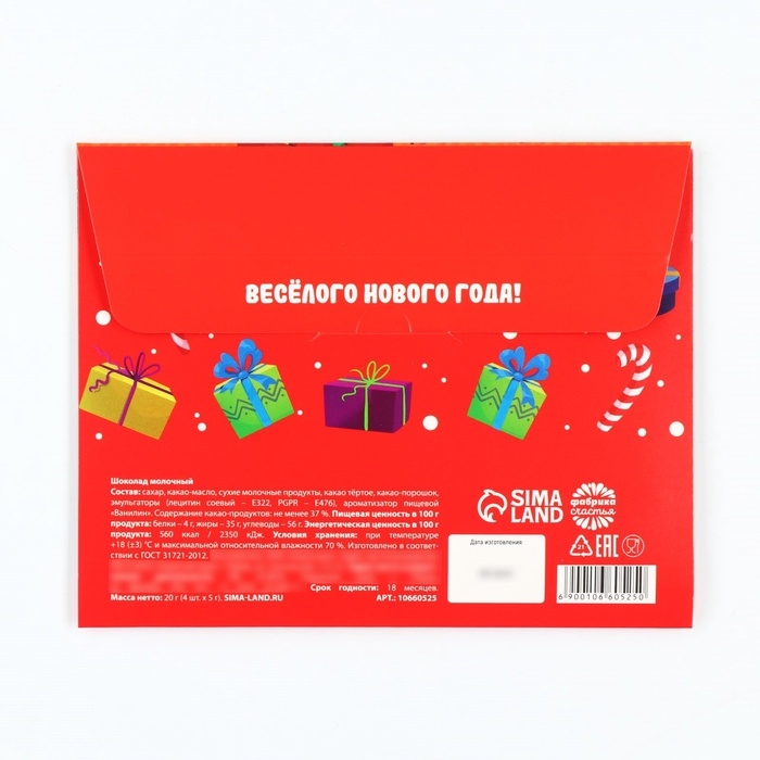 Шоколад в конверте "Зверята дома" 5 гр 4 шт