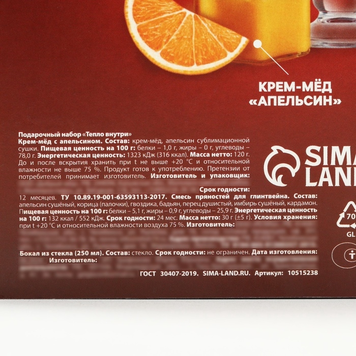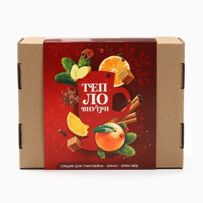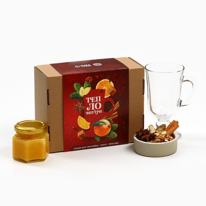 Подарочный набор: специи для глинтвейна, бокал, крем мед "Тепло внутри"