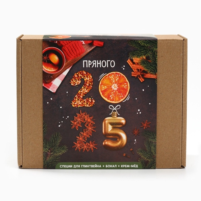 Подарочный набор: специи для глинтвейна, бокал, крем мед "Пряного 2025"