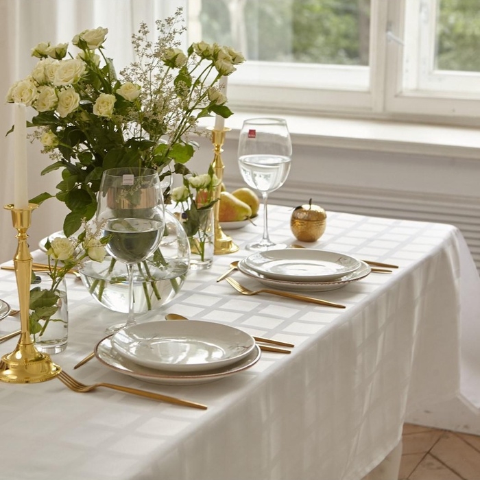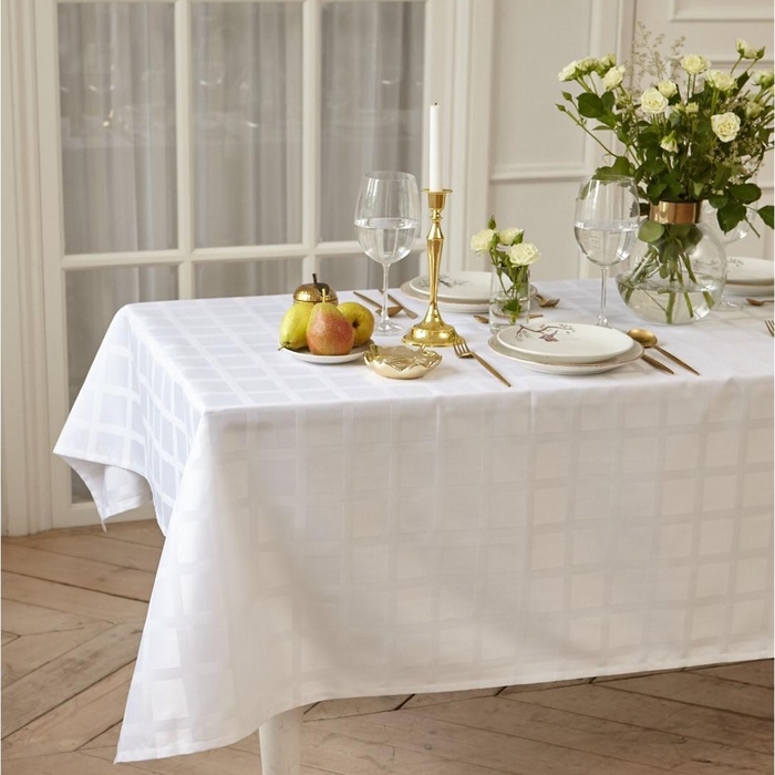 Скатерть "Этель" Geometry овал 150*220 +/-3см, цв.белый, пл. 192 г/м2, хл с ВГМО