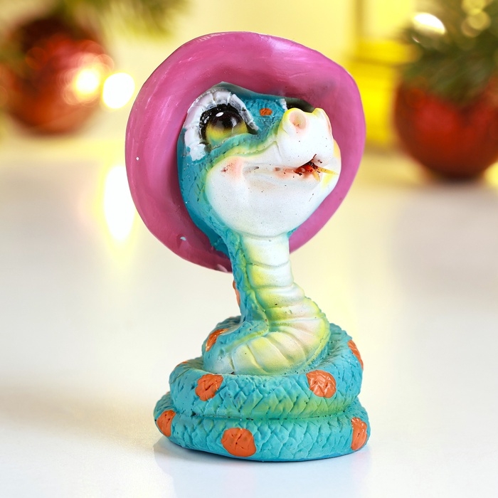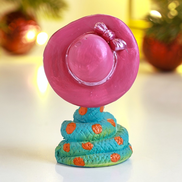 Новый год. Символ 2025. Фигура "Змейка в шляпке" 4х6х6см, цветная