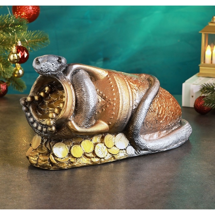 Новый год. Символ 2025. Копилка "Змея на кувшине" 32х19см
