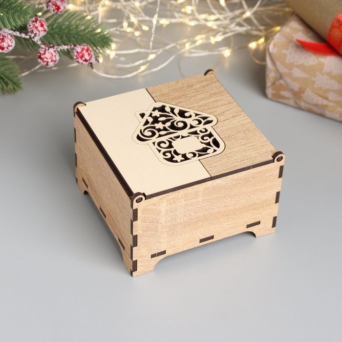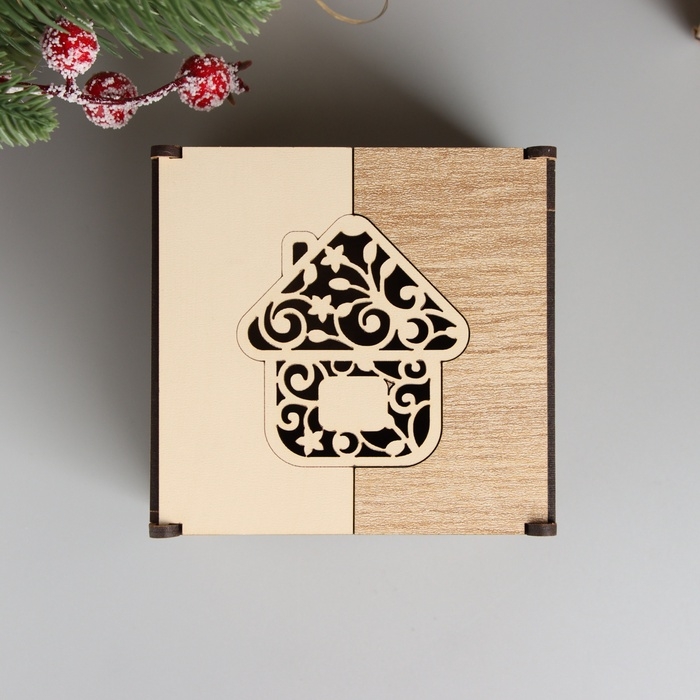 Новогодняя шкатулка комбинированная "Домик" 10,5х10х7 см