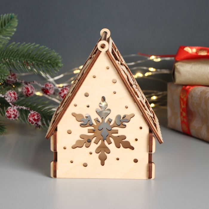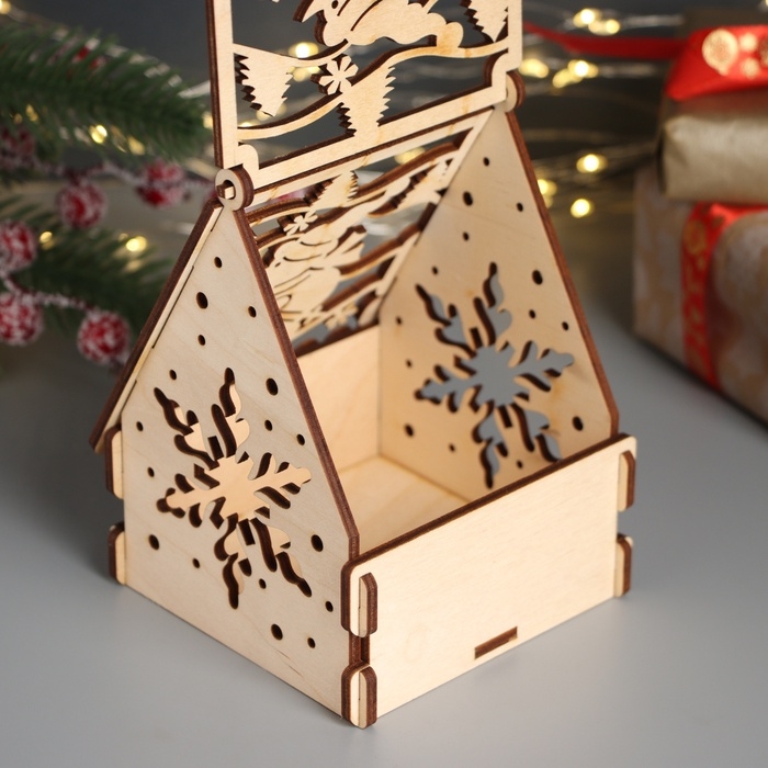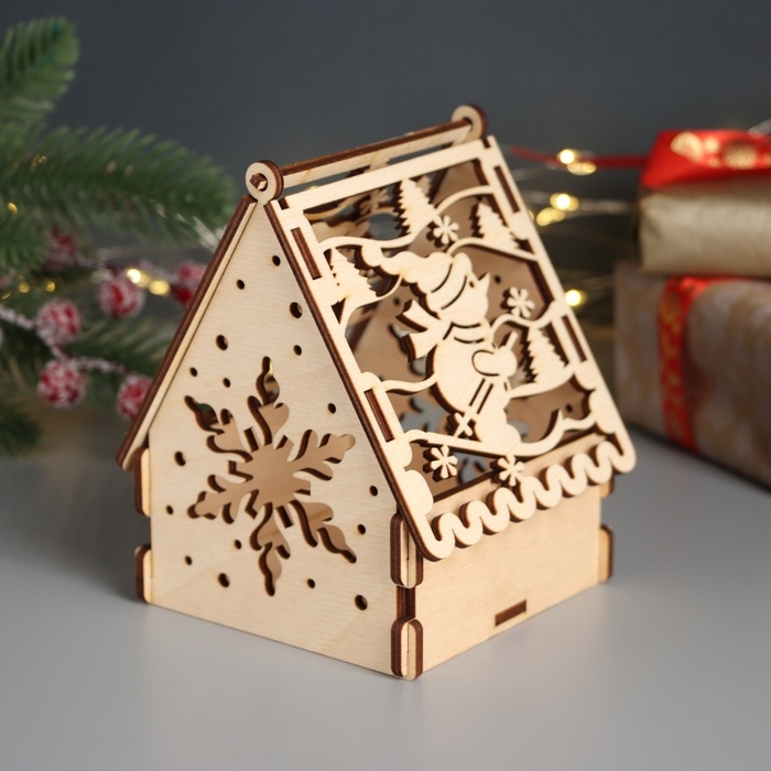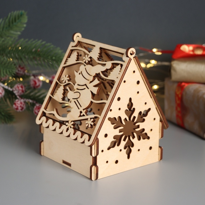Новогодняя шкатулка-домик "Снеговик и подарки" 12х10х14 см