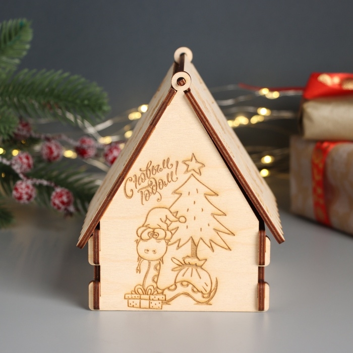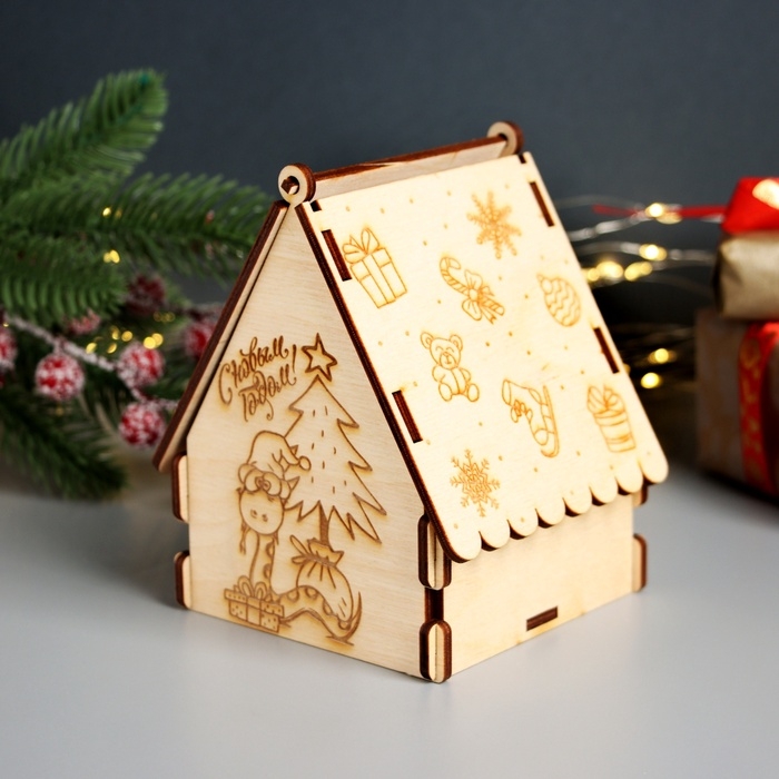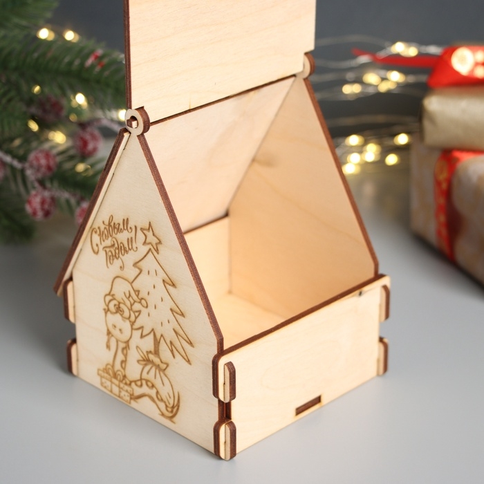 Новогодняя шкатулка-домик "Змея и ёлка" 12х10х14 см