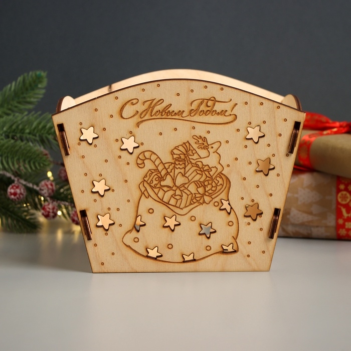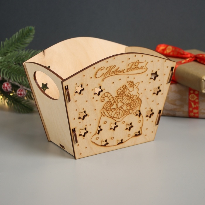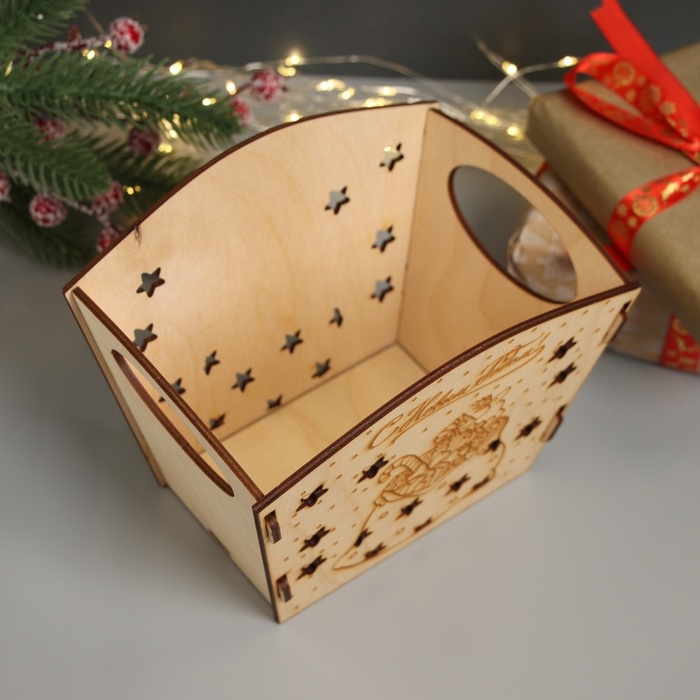 Новогодняя корзинка-шкатулка "Подарки" 18х12х15 см