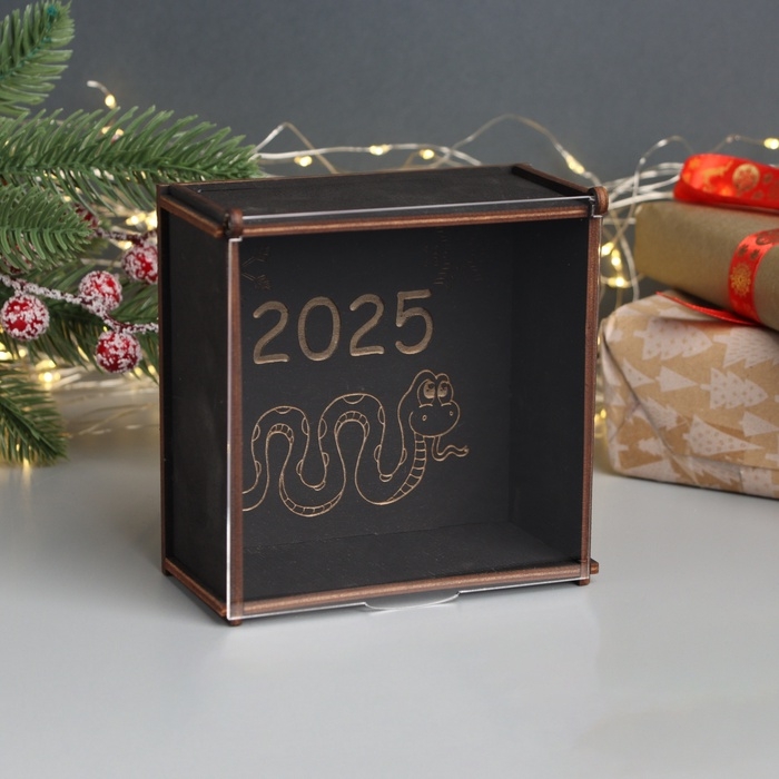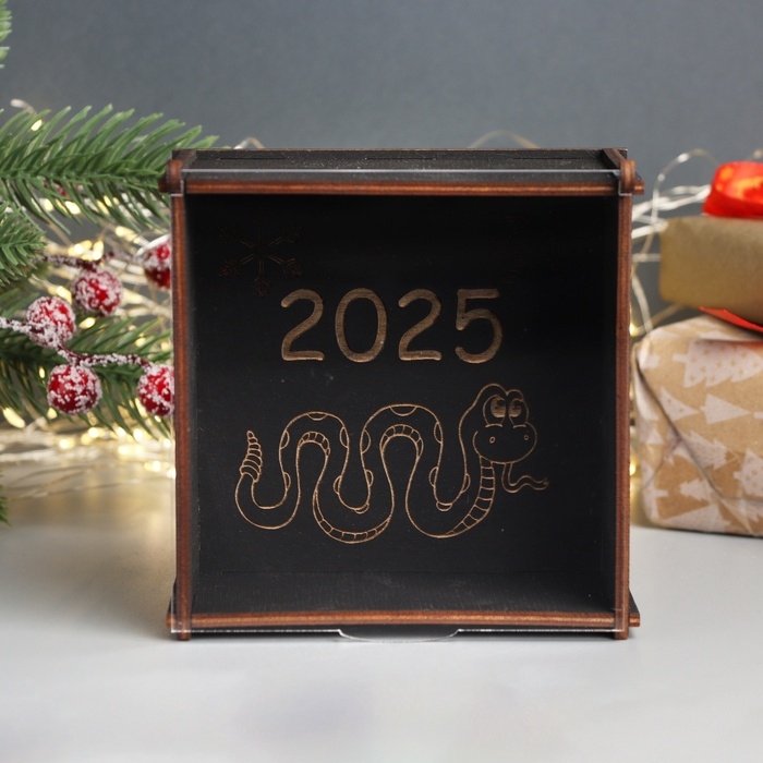 Новогодняя шкатулка "Змея, снежинки" 6х12х12 см