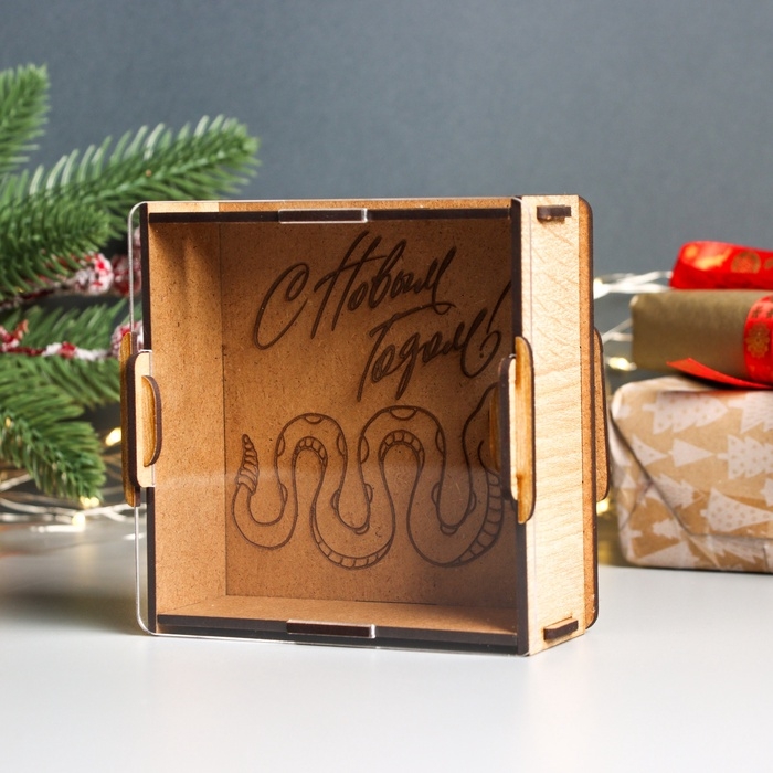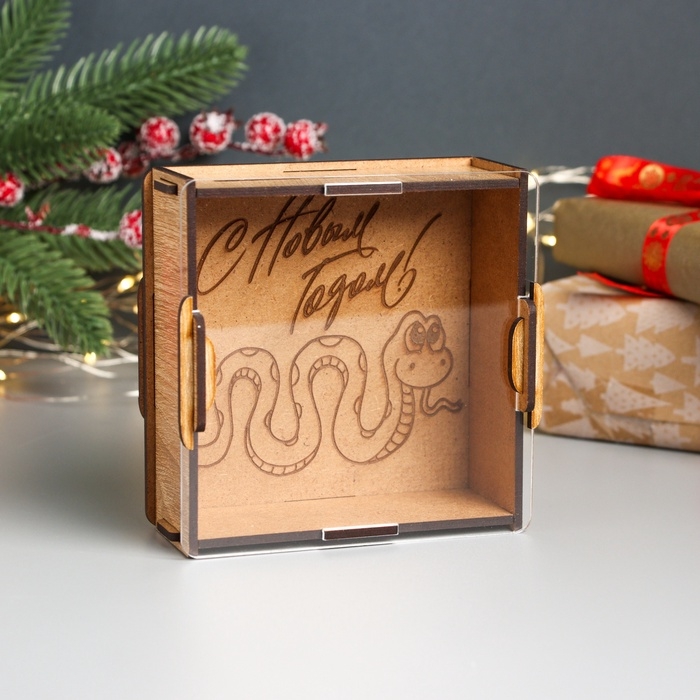 Новогодняя копилка с акрилом "Змея. С Новым годом" 12х12х4 см