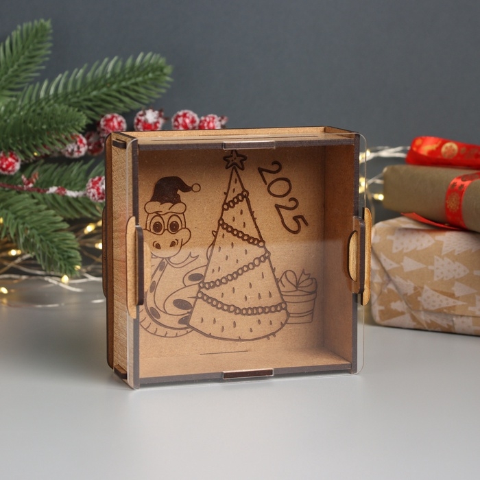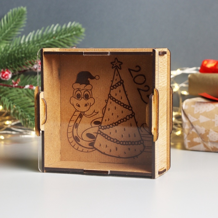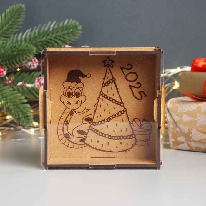 Новогодняя копилка с акрилом "Змея. Праздник" 12х12х4 см