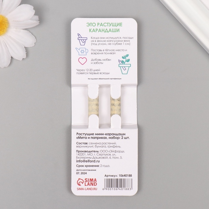 Растущие подарочные карандаши mini "Мята + Паприка" набор 2 шт.