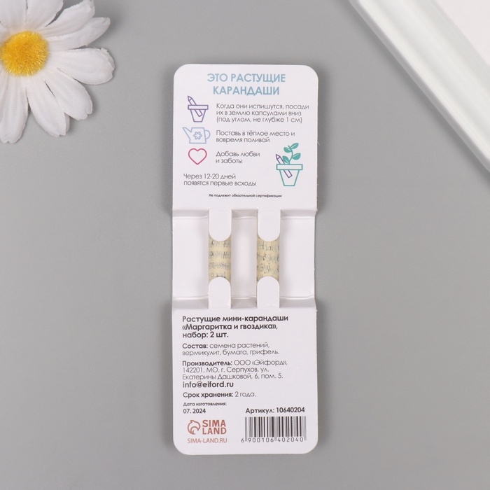 Растущие подарочные карандаши mini "Маргаритка + гвоздика" набор 2 шт.