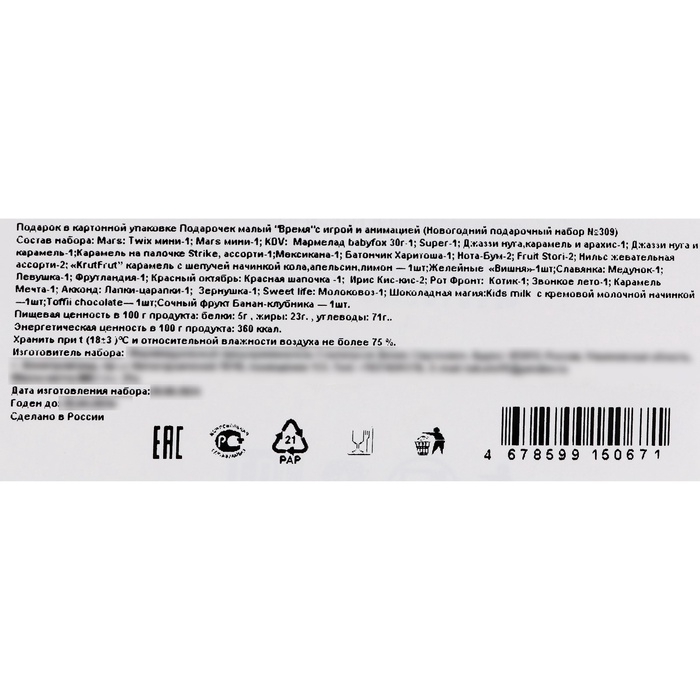 Новый год. Подарочный набор конфет "Время", с игрой и анимацией, 400 г