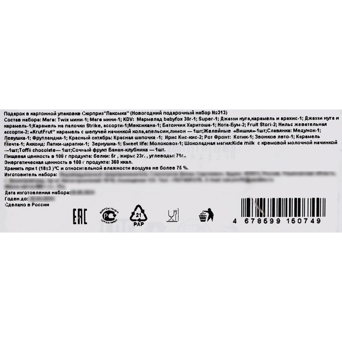 Внутри подарочной коробки вас ждет разнообразие конфет , которые порадуют сладкоежек. Яркая упаковка сразу привлекает внимание и создает атмосферу волшебства, а также, благодаря своему дизайну, идеально вписывается в новогоднюю атмосферу. Набор можно использовать как подарок под ёлку или как сладкое угощение на праздничном столе. Пусть этот набор станет воплощением волшебства праздника для вашего ребенка и создаст незабываемые воспоминания о зимних торжествах!