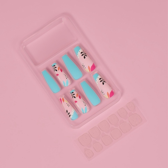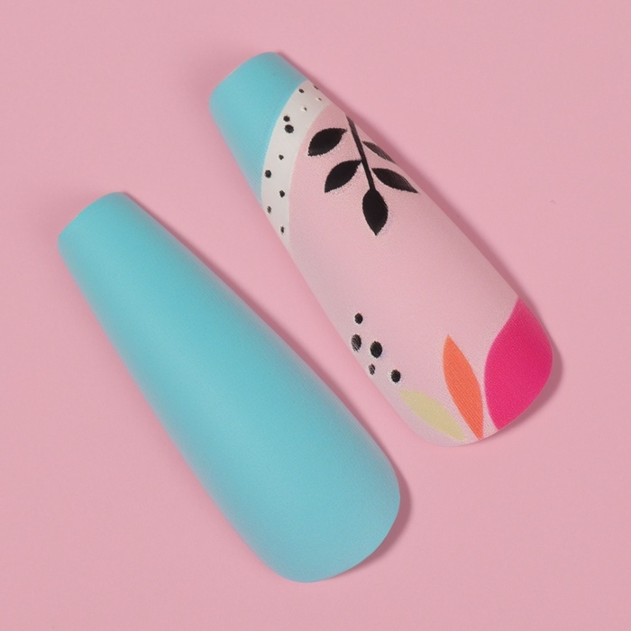 Накладные ногти «Бирюза», 12 шт, с клеевыми пластинами, форма балерина, разноцветные