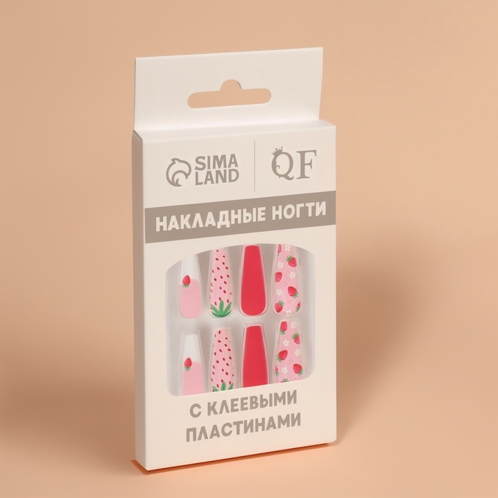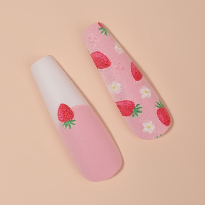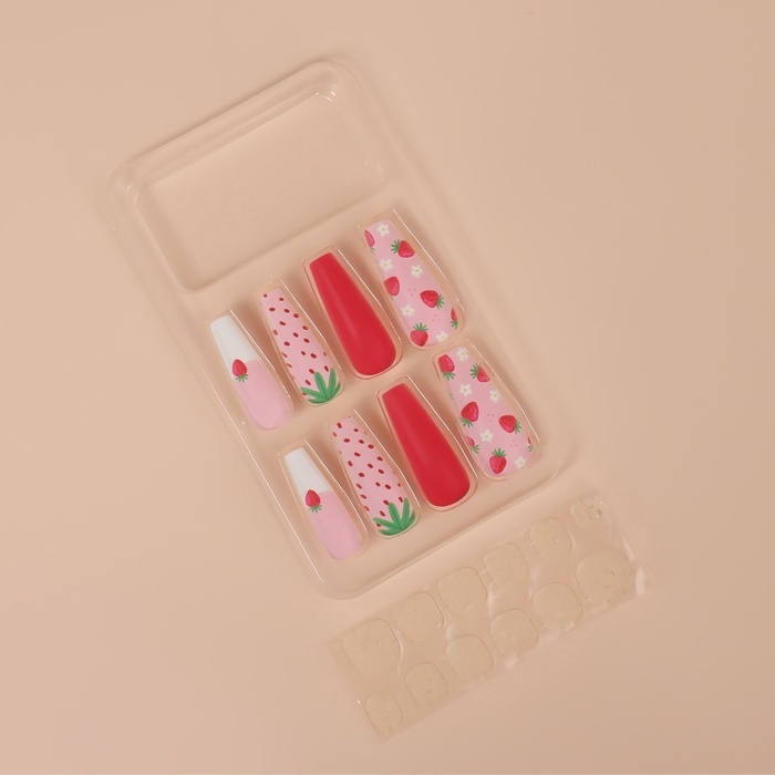Накладные ногти «Клубничка», 12 шт, с клеевыми пластинами, форма балерина, разноцветные