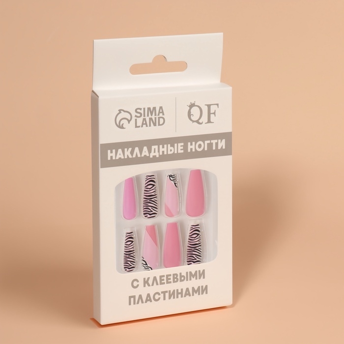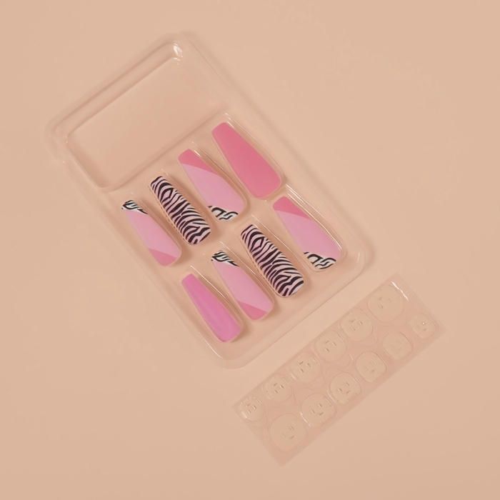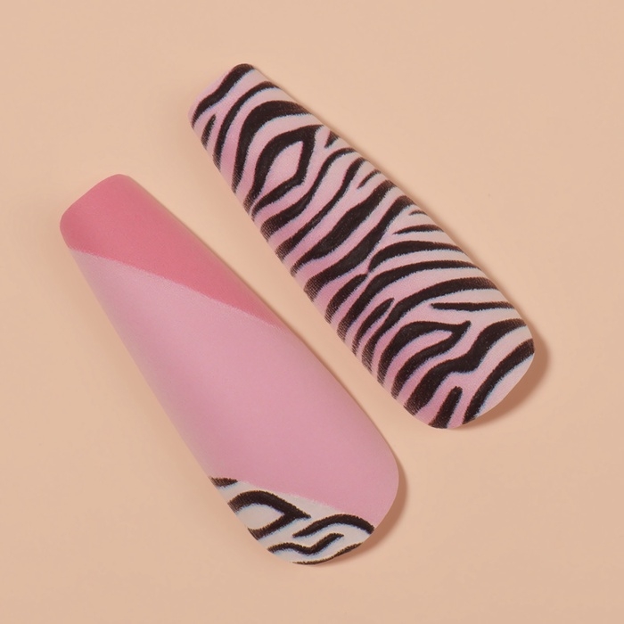 Накладные ногти «Зебра», 12 шт, с клеевыми пластинами, форма балерина, разноцветные