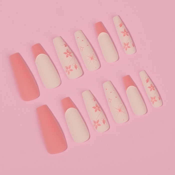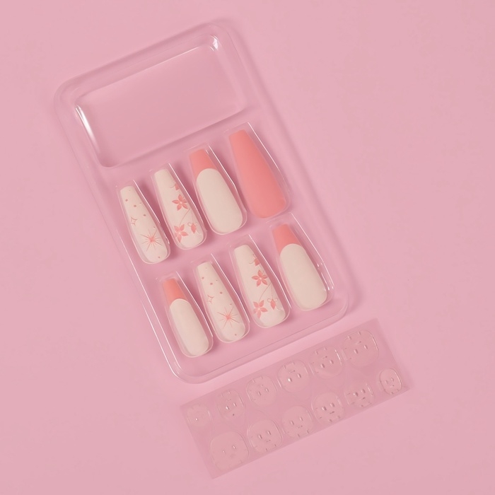 Накладные ногти «Розовая дымка», 12 шт, с клеевыми пластинами, форма балерина, цвет розовый/бежевый