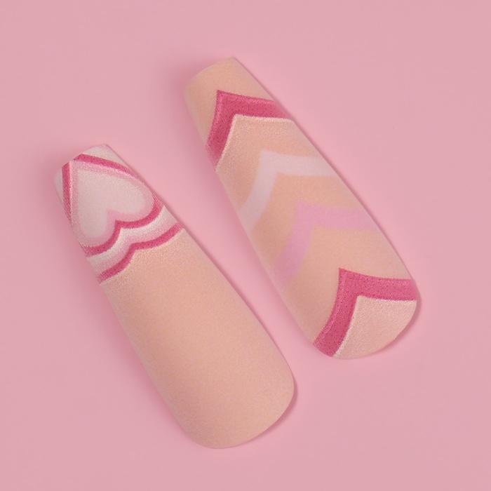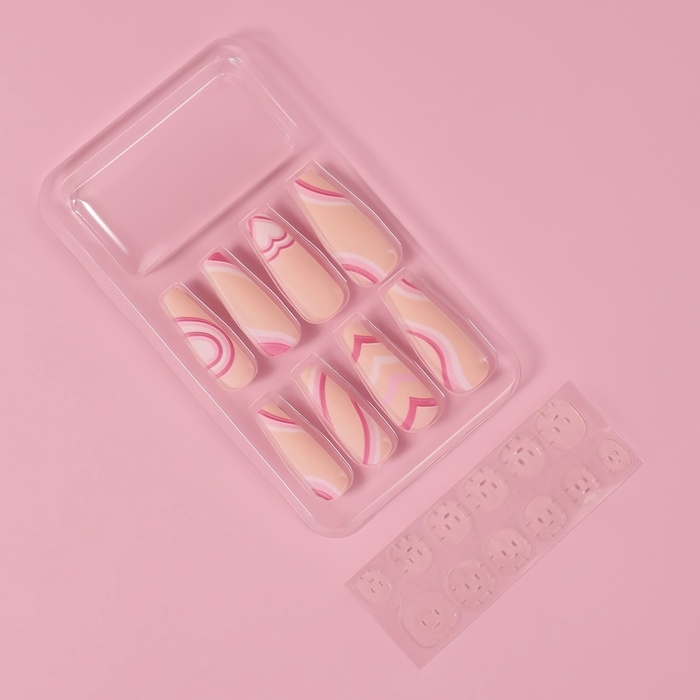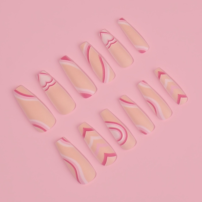 Накладные ногти «Грация», 12 шт, с клеевыми пластинами, форма балерина, цвет бежевый/розовый