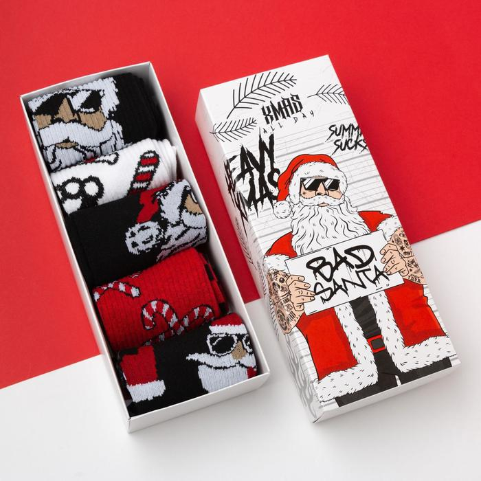 Набор новогодних мужских носков "Плохой Санта" р. 41-44
