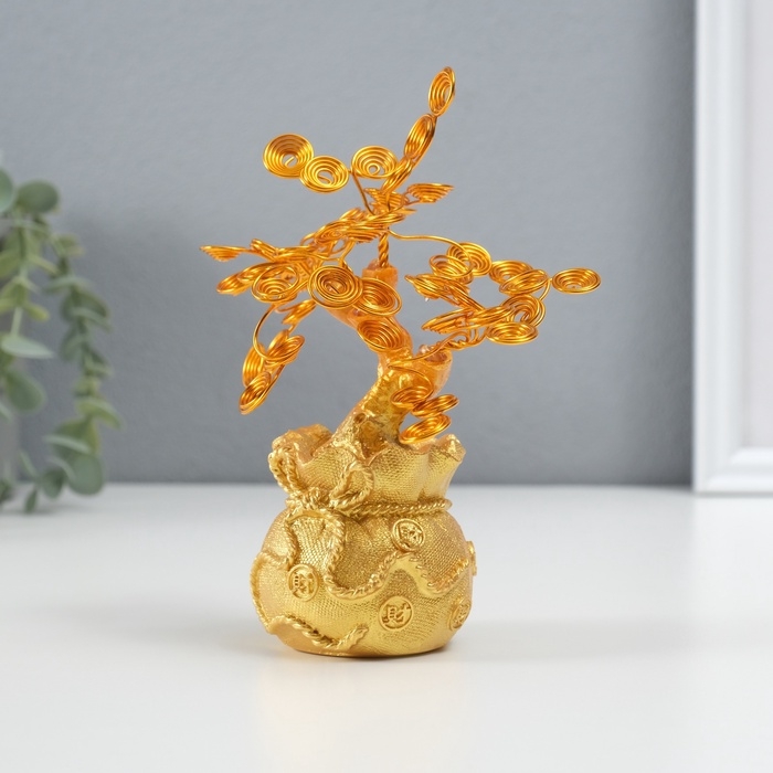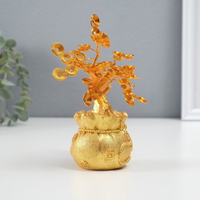 Сувенир полистоун, металл "Дерево жизни в мешке" 6х17х17 см