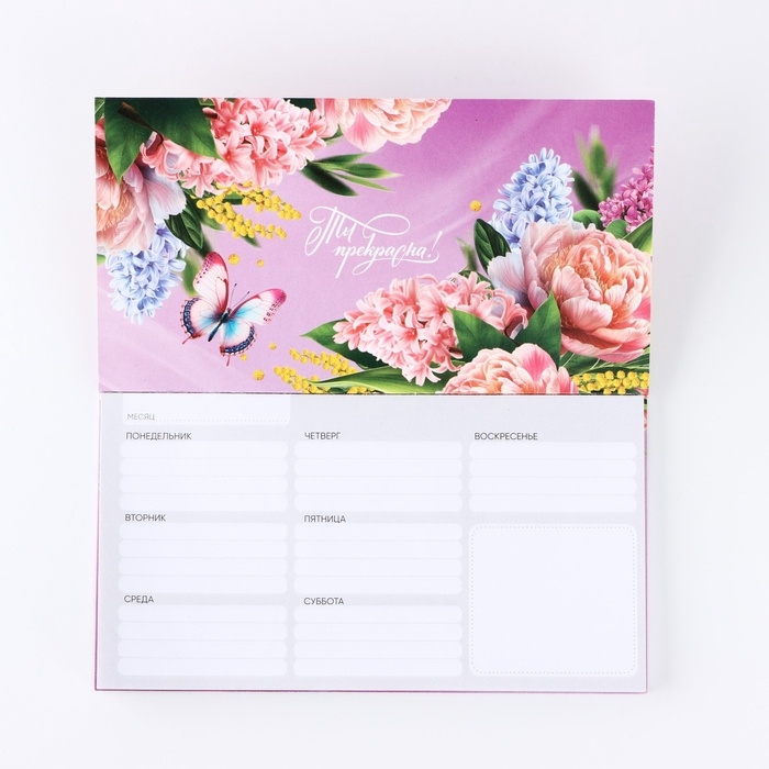 Планер с отрывными листами, 50 л. 17 х 9см "Тюльпаны"