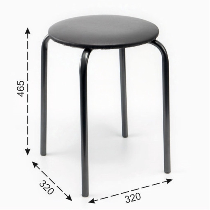 Табурет разборный на четырех опорах с мягким сиденьем из винилискожи. Материал сиденья устойчивый к истиранию и лёгкий в чистке.