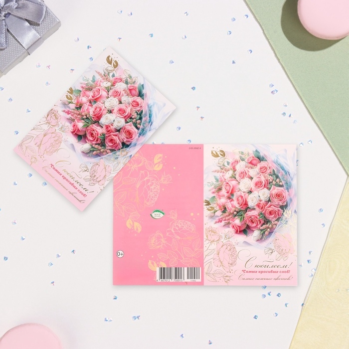 Открытка "С Юбилеем!" конгрев, тиснение, букет, 12,5 х 19,4 см