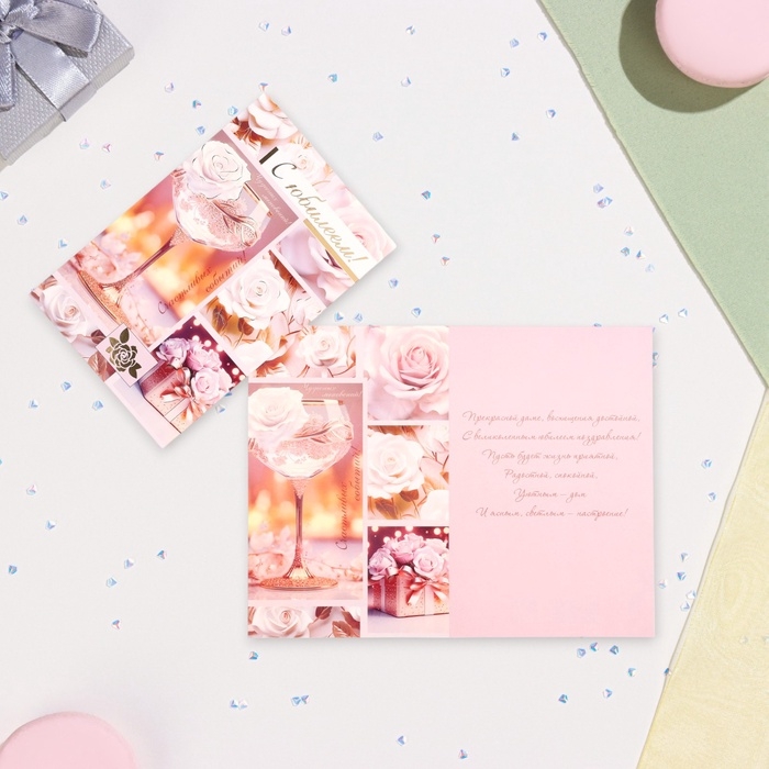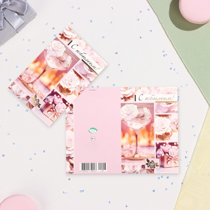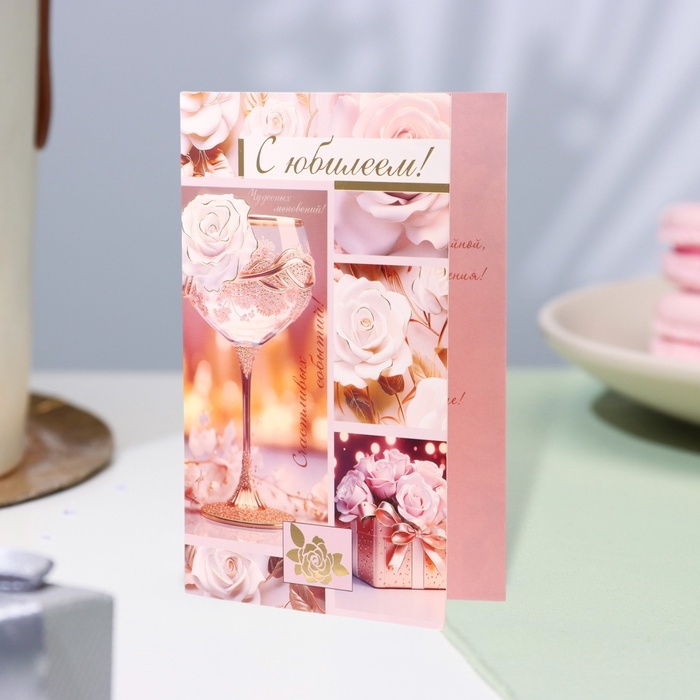 Открытка "С Юбилеем!" конгрев, тиснение, бокал, 12,5 х 19,4 см