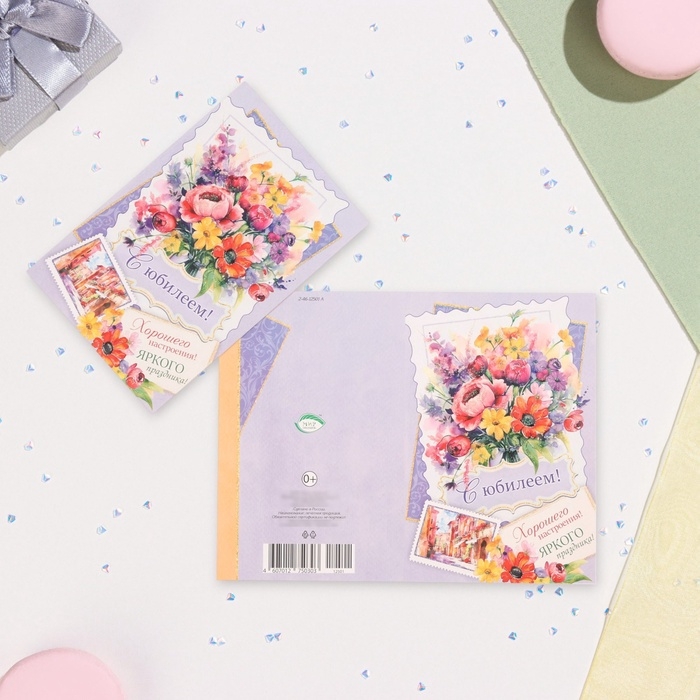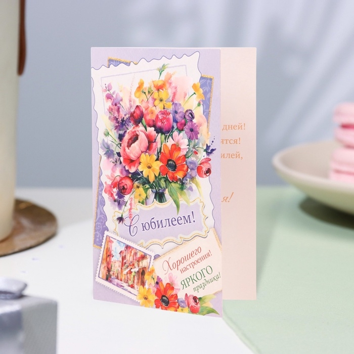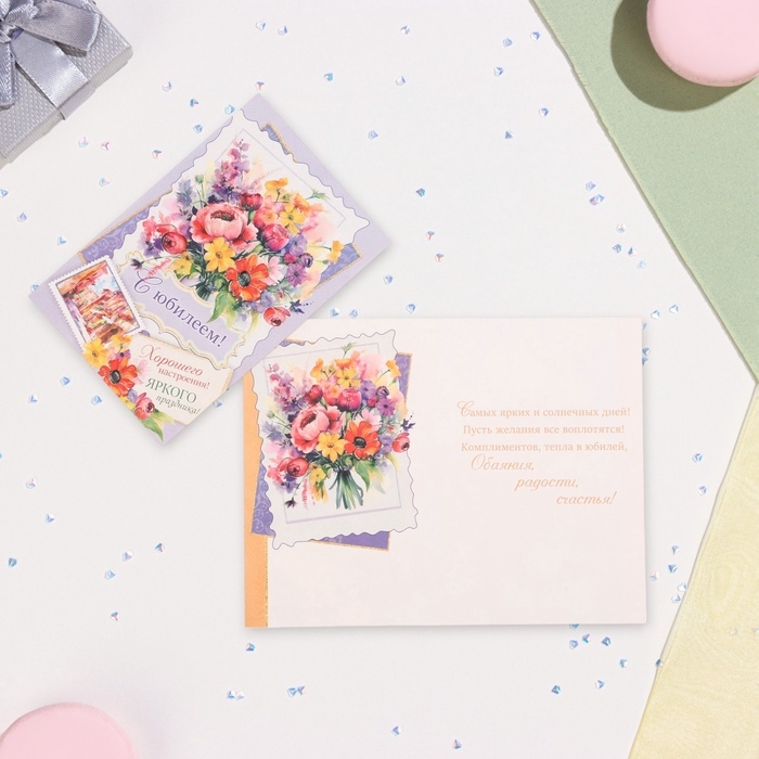 Открытка "С Юбилеем!" глиттер, конгрев, фиолетовый фон, 12,5 х 19,4 см