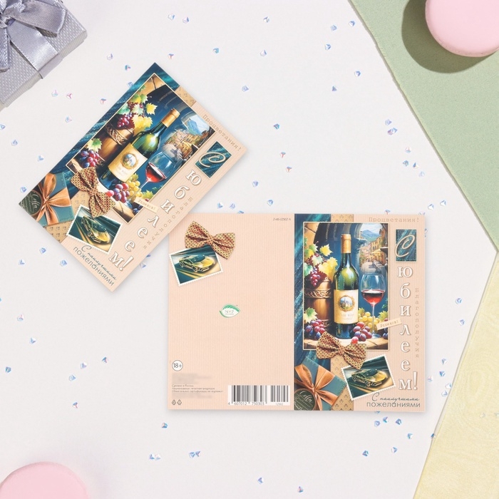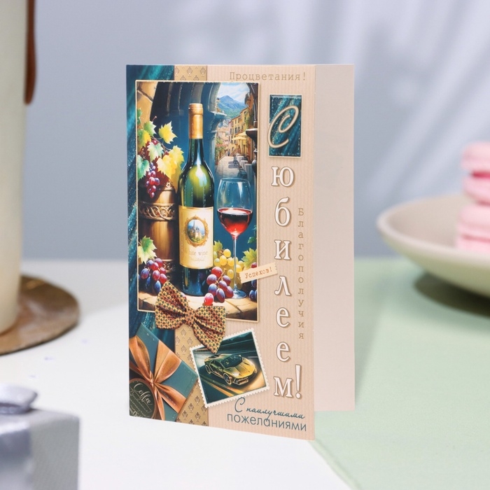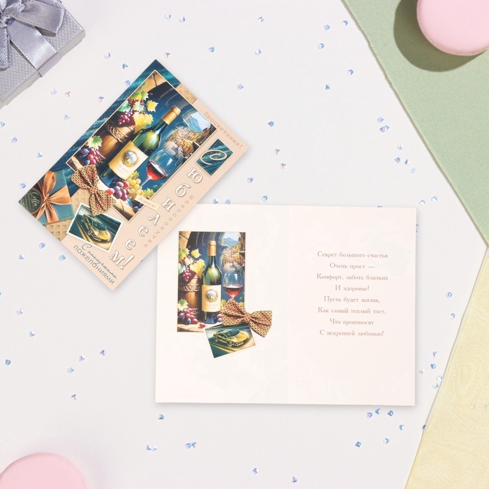 Открытка "С Юбилеем!" глиттер, конгрев, вино, 12,5 х 19,4 см