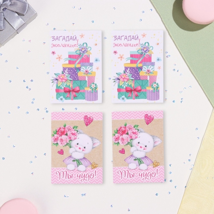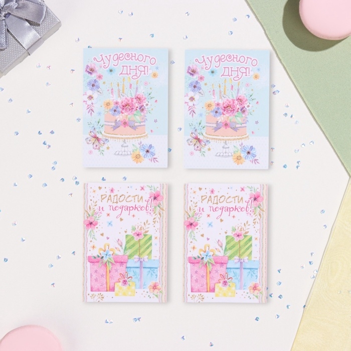 Набор мини-открыток "Пожелания - 2" подарки, 40 штук, 5 х 7 см