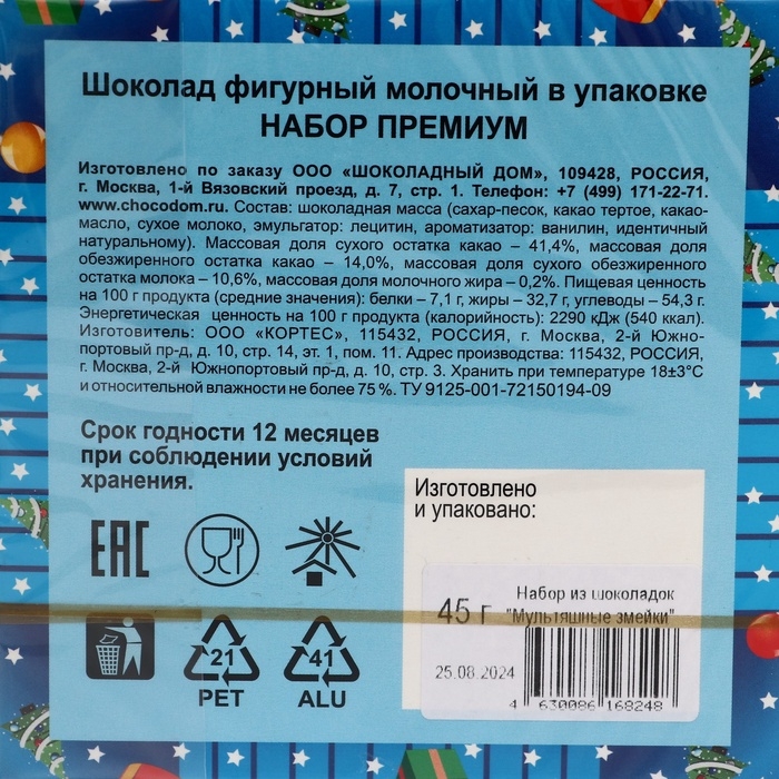 Фигурный шоколад Символ Года "Змея" пазл, 45 г