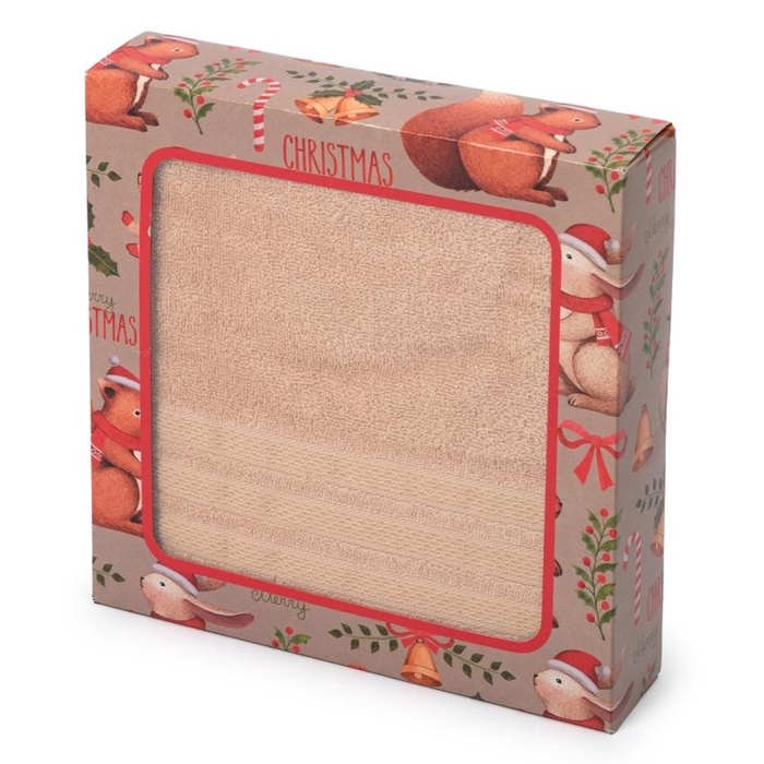 Новый год. Полотенце махровое в коробке Gold weave 70х120см, цвет бежевый, 360г/м хл100%